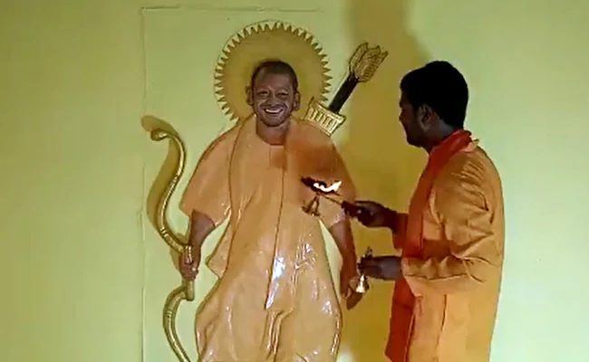 Ayodhya, UP | A temple has been built in the name of CM Yogi Adityanath in Maurya ka Purwa village near Bharatkund in Ayodhya; the temple shows CM Yogi in the form of a God. pic.twitter.com/UuUSxXC3Fk
