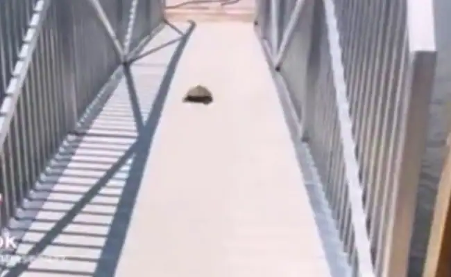हमारी प्रकृति आश्चर्य से भरी हुई है और कई बार तो कुछ ऐसी आश्चर्यजनक घटनाएं देखने को मिलती हैं जिन पर यकीन करना थोड़ा मुश्किल हो जाता. इन दोनों एक ऐसा ही वीडियो सोशल मीडिया पर तेजी से वायरल हो रहा है जिसे देखकर आपको अपनी आंखों पर यकीन नहीं होगा. ऐसा हम इसलिए कह रहे हैं क्योंकि बचपन से हमने आपने सभी ने यही सुना है कि कछुआ धीमी चाल चलता है. लेकिन इंटरनेट पर वायरल हो रहे इस वीडियो में कछुआ तेजी से भागता हुआ नजर आ रहा है. 12 सेकेंड के इस वीडियो में आप देख सकते हैं कि कछुआ पहले धीमी चाल चल रहा है, लेकिन जैसे ही वो एक ब्रिज पर पहुंचता है उसकी चाल अचानक तेज हो जाती है और चलता हुआ नहीं बल्कि ये कछुआ वीडियो में दौड़ता हुआ दिखाई दे रहा है.