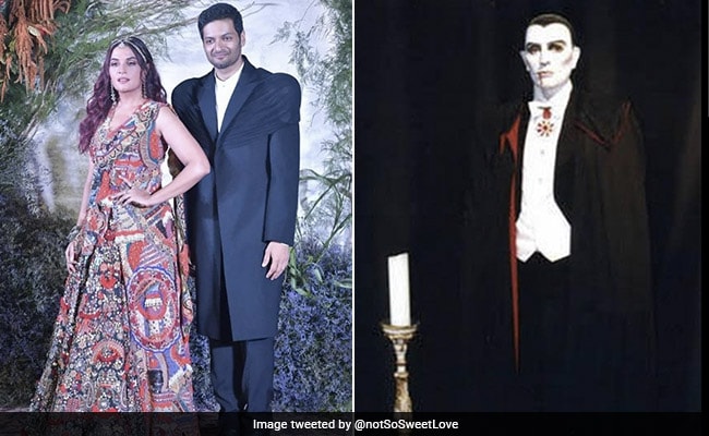कपल के वेडिंग रिसेप्शन की तस्वीरें वायरल हो रही हैं. लोगों ने रिसेप्शन पार्टी से तस्वीरें शेयर कीं जिसमें अली का पहनावा साफ दिखाई दे रहा है. उन्होंने एक ड्रैकुला की तस्वीर के साथ फोटो को जोड़ा और उससे अली फजल के आउटफिट की तुलना की. लोगों इस मजेदार कमेंट्स कर रहे हैं. आइए इसपर एक नज़र डालते हैं…