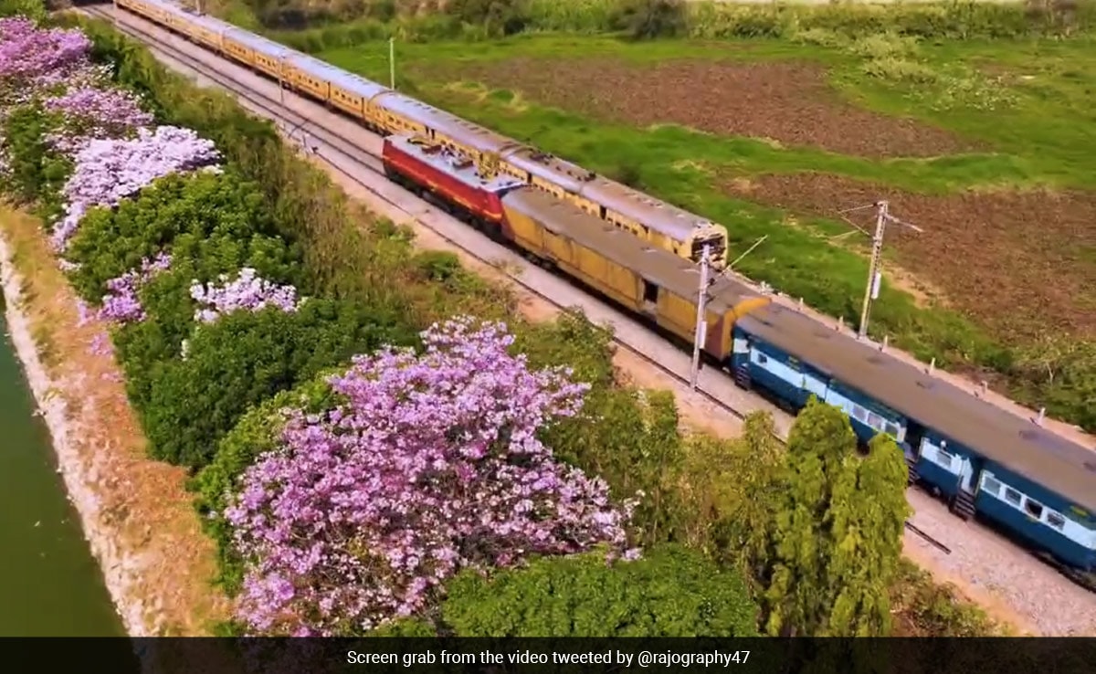 वीडियो को फोटोग्राफर राज मोहन ने ट्विटर पर पोस्ट किया था. वीडियो में गुलाबी रंग के अलग-अलग रंगों को दिखाया गया है, जो सुरम्य परिदृश्य को कैप्चर कर रहा है. इस क्लिप में एक ट्रेन को हरे-भरे खेतों और खिले हुए पेड़ों के बीच से गुजरते हुए दिखाया गया है. वीडियो निश्चित रूप से एक विजुअल ट्रीट है.