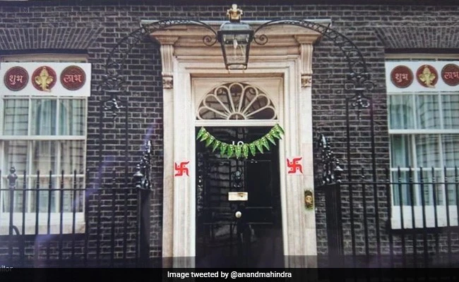 तस्वीर में देखा जा सकता है कि ब्रिटेन का ऐतिहासिक 10 Downing Street बिल्डिंग के गेट पर स्वागतम् और शुभ-लाभ के बैनर लगे हुए हैं. इस तस्वीर को शेयर करने के साथ-साथ आनंद महिंद्रा ने एक कैप्शन भी लिखा है. उन्होंने कैप्शन में लिखा है- 10 Downing Street का यही भविष्य है? अब यहां देसी तड़का लगेगा.