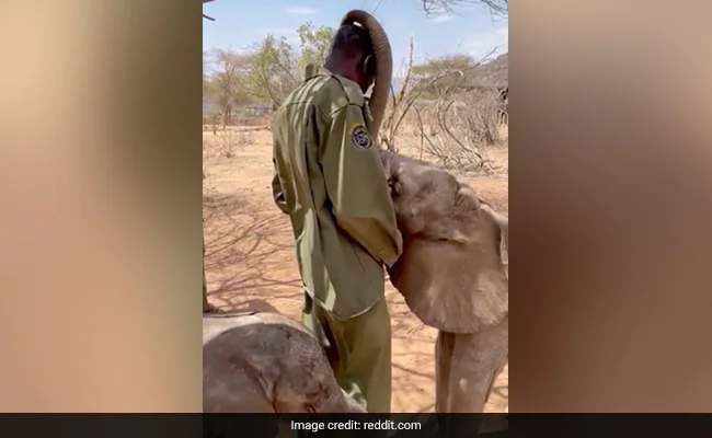 छोटी क्लिप को रेडिट पर एक कैप्शन के साथ शेयर किया गया था, “बेबी हाथी अपने केयरटेकर से प्यार करते हैं”. इसमें दो हाथी के बच्चों को अपने केयरटेकर के शरीर के चारों ओर बड़े प्यार से अपनी सूंड लपेटते हुए दिखाया गया है.