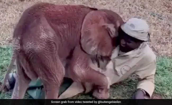 हाथी के बच्चे को सूझी मस्ती, केयरटेकर को लगाने लगा गले