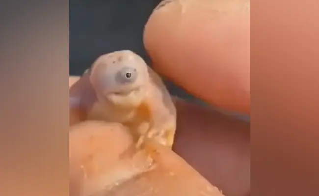 तेजी से वायरल हो रहा यह अनोखा वीडियो इंटरनेट पर हर किसी का ध्यान अपनी ओर खींच रहा है. वीडियो में आप देखेंगे कि एक नन्हा सा कछुआ जन्म से ही दो नहीं बल्कि एक आंख से दुनिया को देख रहा है. अक्सर ऐसे कई जीव-जंतु देखने को मिलते हैं, जिनकी बनावट जन्म से ही थोड़ी अलग होती है. जो कई बार अपने रूप या आकार के कारण चर्चा का विषय बन जाते हैं. जैसे दो मुंह वाले सांप और पांच पैरों वाली गाय. इसी तरह हाल ही में एक आंख वाले नन्हे कछुए का वीडियो सामने आया है, जो सबको हैरान कर रहा है.