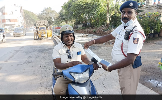 ट्रैफिक पुलिस कमाल के होते हैं. सड़क पर हमारी सुरक्षा के लिए तत्पर रहते हैं. अगर कोई सड़क पर कानून का पालन नहीं करते हैं तो उन्हें चालान काटकर उन्हें कर्तव्यों का पालन करवाते हैं. सोशल मीडिया पर एक ऐसी ही तस्वीर वायरल हो रही है. वायरल तस्वीर में देखा जा सकता है कि बैंगलुरु की ट्रैफिक पुलिस ने एक पुलिस का चालान काटा. उस पुलिस कर्मचारी की गलती बस इतनी थी कि उसने पूरा हेलमेट पहन नहीं रखा था. सोशल मीडिया पर यह तस्वीर वायरल हो रही है. तस्वीर में देखा जा सकता है कि पुलिस कर्मचारी एक आधा हेलमेट पहनकर स्कूटी चला रहा था.