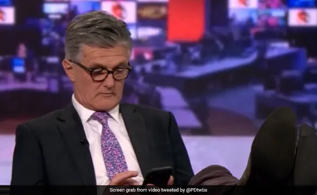 चश्मा लगा रहा था, वह अपने फोन को बीच-बीच में स्क्रॉल कर रहा था और लाइव फीड चेक कर रहा था. यह महसूस करते हुए कि वह ऑन-एयर है, एंकर ने अचानक अपना फोन, चश्मा और पैर दूर रख दिए. इसके बाद फुटेज वापस एटकिंस को दिखाता है.