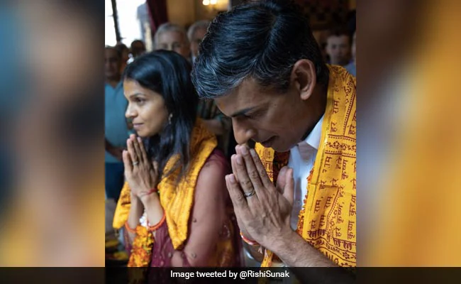 तस्वीर में देखा जा सकता है कि ऋषि सुनक अपनी पत्नी अक्षता के साथ भगवान श्री कृष्ण की पूजा कर रहे हैं. ऋषि ब्रिटेन के पीएम पद के सबसे तगड़े दावेदार हैं. अगर वो चुनाव जीत जाते हैं तो वो ब्रिटिश पीएम बनने वाले देश के पहले भारतीय मूल के व्यक्ति होंगे.