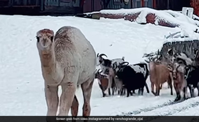 ऊंट ने पहली बार देखी बर्फ, खुशी से हवा में छलांग लगाकर लगा कूदने