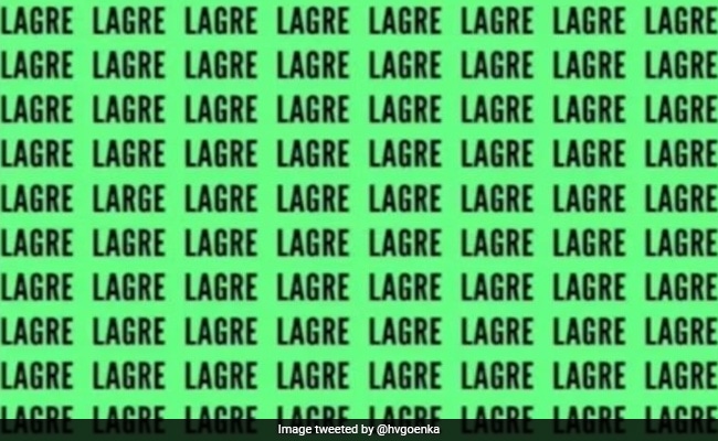 इस तस्वीर को बिजनेसमैन हर्ष गोयनका ने ट्विटर पर शेयर किया है. फोटो को साथ उन्होंने लोगों को चैलेंज दिया है. उन्होंने लिखा- आइए देखें कि क्या आप 10 सेकंड में ‘LARGE’ की स्पेलिंग सही तरीके से खोज सकते हैं. इस ऑप्टिकल एल्यूज़न में एक ही स्पेलिंग को इतनी तरह से लिखा गया है कि इनके बीच एक खास शब्द ‘LARGE’को ढूंढने में काफी दिक्कत हो रही है. इस शब्द को 10 सेकेंड में ढूंढ निकालने वाले खुद को जीनियस मान सकते हैं. इस पहेली को सुलझाने में आपको निश्चित तौर पर मज़ा आएगा.