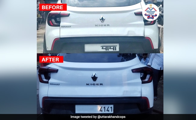 ट्वीट के साथ दी गई तस्वीर में दिख रहा है कि गाड़ी का रजिस्ट्रेशन नंबर ‘4141’ था, जिसे इस तरह लिखा गया था कि यह हिंदी के ‘पापा’ शब्द से मिलता-जुलता था.