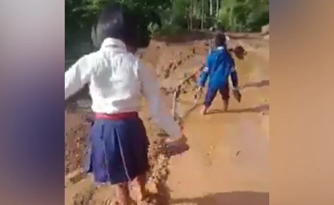 वीडियो में देखा जा सकता है कि कैसे बच्चे तमाम मुश्किलों से गुजर स्कूल पढ़ने जा रहे हैं. सोशल मीडिया पर यह वीडियो इसी दावे के साथ शेयर किया जा रहा है. इस वीडियो को सोशल मीडिया पर @th_robert नाम के ट्विटर यूज़र ने शेयर किया है. इस वीडियो को शेयर करते हुए उन्होंने जानकारी भी दी है. जानकारी में उन्होंने लिखा है- मणिपुर के चंदेल जिले के खेंगजोई क्षेत्र में अच्छी सड़क नहीं होने के कारण बच्चों को स्कूल जाने में दिक्कत हो रही है. 1980 के दौरान हमने ऐसी सड़कें देखी हैं, मगर अभी के समय में यह स्वीकार्य नहीं है. सरकार को गंभीरता के साथ इसे देखना चाहिए.