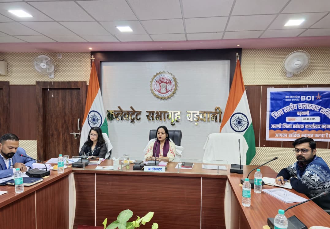 बड़वानी 06 दिसम्बर 2025/कलेक्टर जयति सिंह की अध्यक्षता कलेक्ट्रेट सभागृह बड़वानी में जिला स्तरीय बैंकर्स सलाहकार एवं समीक्षा समिति की बैठक आयोजित की गई। बैठक में जिला पंचायत सीईओ सुश्री काजल जावला, संयुक्त कलेक्टर श्री सोहन कनाश, डीडीएम नाबार्ड, बैंक के आंचलिक/क्षेत्रीय कार्यालयों के प्रतिनिधि, जिला समन्वयक एंव विभागीय अधिकारी प्रमुख रूप से सम्मिलित हुए।