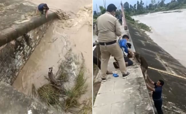 वीडियो में देखा जा सकता है कि, कैसे एक डॉगी बांध में फंस जाता है और उफनती लहरों से घिर जाता है. इस दौरान एक शख्स रस्सी पकड़कर डॉगी को बचाने के लिए ढलान पर जाते हुए दिखाई देता है. डॉगी को खतरे से बाहर निकालने के लिए शख्स खुद की जान जोखिम में डालकर कड़ी मश्क्कत के बाद उसे बचाने में सफल हो जाता है. वीडियो में कुछ और लोगों को भी हाथों में रस्सी लिए देखा जा सकता है, जिसके अगले किनारे पर एक शख्स झूलते हुए पानी के तेज बहाव में फंसे डॉगी को किसी तरह बचा लेत है.