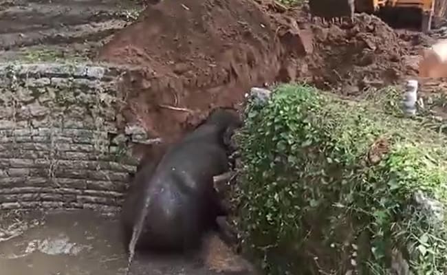 #WATCH | An elephant that fell into a well Monday night in Gundla Palle village of Andhra Pradesh’s Chittoor is rescued by a joint team of forest officials & fire brigade pic.twitter.com/S8tSB4OL6V
