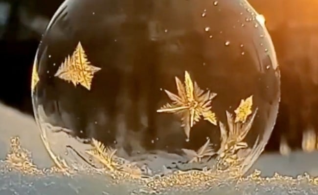 वायरल वीडियो में देखा जा सकता है कि कैसे एक बुलबुला, बर्फ में तब्दिल हो रहा है. लोगों को सोशल मीडिया पर एक वीडियो वायरल हो रहा है. यह वीडियो लोगों को इसलिए पसंद आ रहा है क्योंकि लोगों ने कभी बुलबुले को बरफ बनते नहीं देखा है. इस वीडियो को लोग सोशल मीडिया पर शेयर कर रहे हैं.