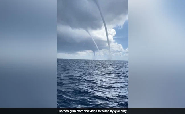 वायरल हो रहे इस वीडियो में एक या दो नहीं, बल्कि चार-चार बवंडर एक साथ दिख रहे हैं. यह नजारा वाकई हैरान कर देने वाला है. वीडियो में आप देख सकते हैं कि कैसे समंदर की सतह को छूता यह बवंडर बादलों से जा मिलता है. तेजी से वायरल होता है बवंडर का यह वीडियो स्पेन के आइलैंड Mallorca का बताया जा रहा है, जिसे एक सेलबोट से कैप्चर किया गया है.