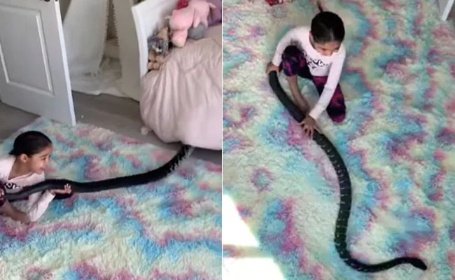 खिलौने की तरह इस भयानक सांप से खेलती है ये बच्ची, Video देख निकल जाएगी चीख