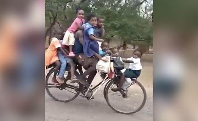 अगर आप ध्यान से देखेंगे तो इस वीडियो पर 9 बच्चे शामिल हैं. एक शख्स जो साइकिल चला रहा है, उसे मिला दिया जाए तो साइकिल पर कुल 10 लोग सवारी कर रहे हैं. देखा जाए तो ये बहुत बड़ी संख्या है. साइकिल पर ज्यादा से ज्यादा 2 या 3 लोग बैठ सकते हैं, मगर इस शख्स ने तो कमाल ही कर दिया है.