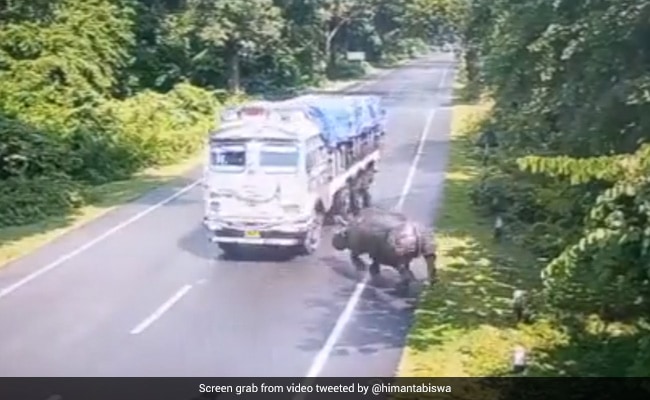 Rhino Hit By Truck In Assam: असम के मुख्यमंत्री हिमंता बिस्वा सरमा (Assam Chief Minister Himanta Biswa Sarma) ने बीते रविवार को अपने ट्विटर हैंडल से एक वीडियो शेयर किया, जिसमें एक गैंडे (Rhino) को एक तेज रफ्तार ट्रक से टकराते देखा जा सकता है, जिसके कारण गैंडे को गंभीर चोटें भी आईं. वीडियो में देखा जा सकता है कि, हादसे के बाद गैंडा किस तरह सड़क पर गिरता-पड़ता हुआ वापस जंगल में चला जाता है.
