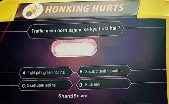 ट्विंग पर शेयर हुई इस फोटो में आप एक ऑटो देख पा रहे हैं, अब जरा इस पर लिखे सवाल पर भी नजर डालें. ऑटो पर कौन बनेगा करोड़पति के अंदाज में सवाल लिखा है, ‘ट्रैफिक में हॉर्न बजाने से क्या होता है’. इसके नीचे चार ऑप्शन भी दिए गए हैं. पहला, लाइट जल्दी ग्रीन हो जाती है. दूसरा सड़क चौड़ी हो जाती है. तीसरा, गाड़ी उड़ने लगती है और चौथा कुछ नहीं. इस बेहद मजेदार और फनी सवाल-जवाब को देख कोई भी खुद को हंसने से नहीं रोक पाएगा. दरअसल यह सच भी है, ट्रैफिक में बार-बार हॉर्न बजाने से होता तो कुछ भी नहीं लेकिन आदत की वजह से लोग लगातार ऐसा करते हैं.