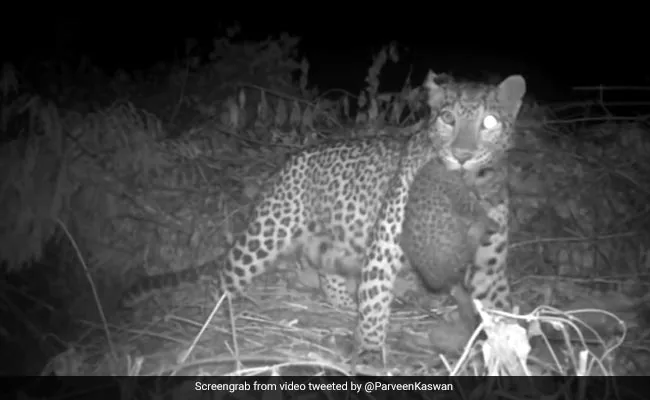 भारतीय वन अधिकारी (IFS), परवीन कस्वां (Parween Kaswan) द्वारा मंगलवार को ट्विटर पर शेयर किए गए वीडियो की शुरुआत में मां तेंदुए को अपने बच्चों को अपने मुंह में लेकर जाते हुए दिखाया गया है. शावक को अपने मुंह में रखने से पहले थोड़ी देर के लिए तेंदुए ने उसे जमीन पर रखा. इसके बाद तेंदुए की मां को झाड़ियों में घूमते देखा जा सकता है.