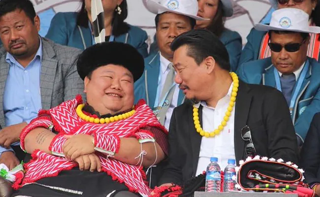 सोशल मीडिया पर काफी एक्टिव रहने वाले नागालैंड के मंत्री तेमजेन इमना अलॉन्ग (Temjen Imna Along) अपने मज़ेदार ट्वीट के चलते अक्सर सुर्खियों में बने रहते हैं. हाल ही में उन्होंने अपने ट्विटर हैंडल से एक तस्वीर शेयर करते हुए यह पोस्ट शेयर की है, जिसमें वे स्माइल करते हुए नजर आ रहे हैं. तस्वीर को देखकर अंदाजा लगाया जा सकता है कि मंत्री किसी कार्यक्रम में है. तस्वीर में वे अपने बगल में बैठे एक व्यक्ति की बात को सुनकर मुस्कुराते नजर आ रहे हैं. वहीं मंत्री के ठीक पीछे वाली कतार में बैठे तीन लोगों के चेहरे पर मुस्कान नहीं थी.