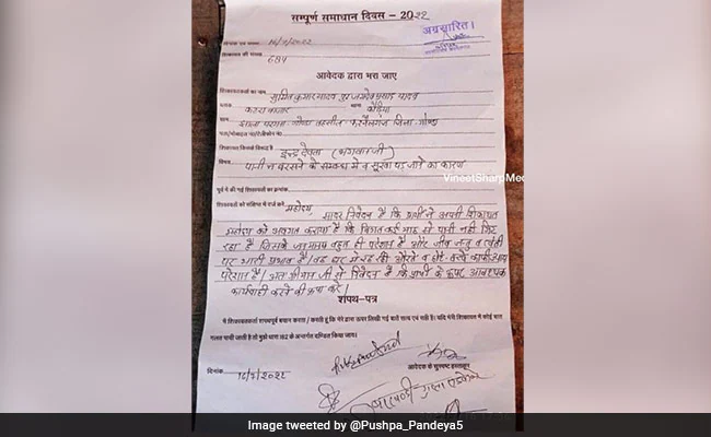 इस प्रार्थना पत्र के विषय में शिकायतकर्ता ने पानी न बरसने और सूखा पड़ने की बात लिखी है. उसने आगे लिखा- बीते कई महीने से पानी नहीं बरस रहा है जिससे जनमानस परेशान है. जीव-जंतुओं और खेती पर काफी प्रभाव पड़ रहा है. लोग गर्मी से बेहाल हो रहे हैं. अतः श्रीमान जी से निवेदन है कि आवश्यक कार्रवाई करने की कृपा करें. सुमित कुमार के शिकायती पत्र को तहसीलदार करनैलगंज ने कार्रवाई के लिए आगे बढ़ा दिया है.