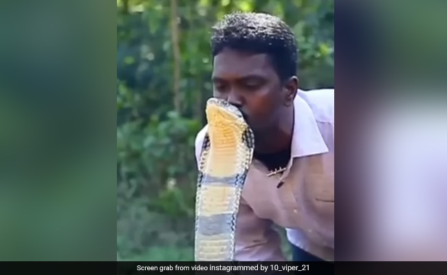हाल ही में वायरल इस खौफनाक वीडियो को देखकर यूजर्स भी हक्के-बक्के रह गए हैं. वीडियो में एक शख्स दुनिया के सबसे जहरीले सांप किंग कोबरा के सिर पर किस करता दिखाई दे रहा है, जिसे देखकर इंटरनेट पर हर किसी के होश उड़ रहे हैं. रोंगटे खड़े कर देने वाले इस वीडियो में आप देखेंगे कि कैसे एक शख्स किंग कोबरा को चूमने के लिए धीरे-धीरे उसके नजदीक जाता है और थोड़ी देर बाद वो उसे किस कर भी लेता है. हैरानी की बात तो यह है कि, इसमें किंग कोबरा के रिएक्शन देखने लायक होते हैं, लेकिन आपको बता दें कि यह बहुत ही खतरनाक है, ऐसा करने की गलती भूल से भी ना करें. ये जानलेवा साबित हो सकता है.