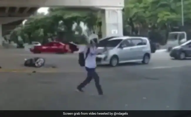 वायरल हो रहे इस वीडियो में आप देख सकते हैं कि एक तेज रफ्तार बाइक सवार गलत साइड से आ रहा है और सामने से ढेरों गाड़ियां गुजर रही हैं. तभी वो एक कार के सामने आ जाता है और कार वाला उसे ज़ोर की टक्कर मारता है. टक्कर इतनी तेज होती है कि बाइक सवार दूर जाकर गिरता है और उसकी बाइक के कई टुकड़े हो जाते हैं, लेकिन फिर आप देखेंगे कि बाइक चला रहा शख्स तुरंत उठता है और खड़े होकर अजीबोगरीब हरकतें करने लगता है. वो एक जगह से दूसरी जगह घूमता है और फिर कुछ अजीबोगरीब करता है, जैसे उसे ज़रा भी चोट नहीं आई और उसे कुछ हुआ है नहीं.
