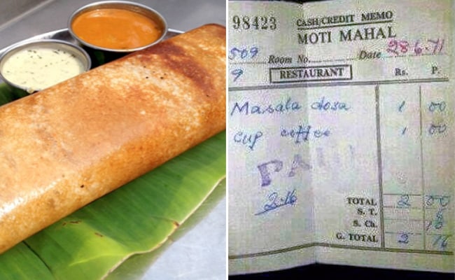 एक ऐसा ही बिल इन दिनों इंटरनेट पर देखने को मिल रहा है, जो की 28 जून 1971 का है. बिल में मसाला डोसा और कॉफी का कीमत लिखी हुई है, जिसे देखकर आपका दिमाग भी चकरा जाएगा. बिल में मसाला डोसा की कीमत एक रुपये लिखी हुई है. इसी तरह कॉफी की कीमत भी एक रुपये लिखी देखी जा सकती है, जिसका टोटल दो रुपये बन रहा है. बिल में सर्विस टैक्स 6 पैसे और सर्विस चार्ज 10 पैसे लिया गया है. बिल को देखकर हैरानी होना लाजिमी है.