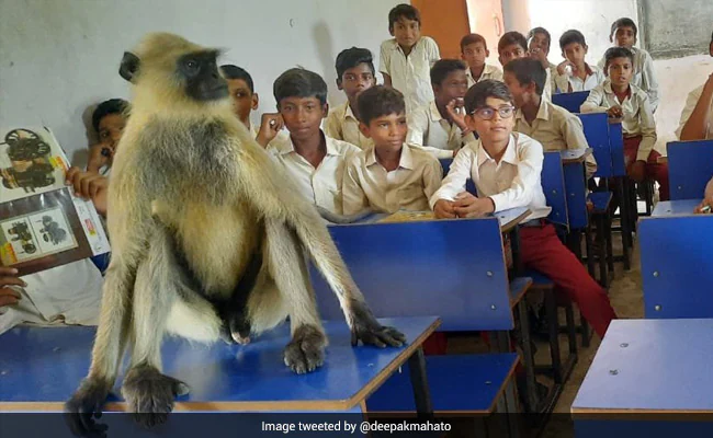 बंदर को हजारीबाग के एक सरकारी स्कूल में छात्रों के साथ क्लास में जाते देखा गया. यह आराम से पिछली लाइन में बैठा देखा गया, जबकि शिक्षक छोटे बच्चों को पढ़ाते रहे.