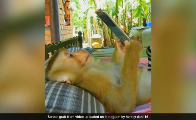 वायरल हो रहे इस वीडियो में आप देख सकते हैं कि घर के अंदर बेड पर एक बंदर बड़े आराम से लेटा है. उसने एक मोबाइल भी लिया हुआ है और मोबाइल पर वो बड़े ध्यान से वीडियो देख रहा है. बंदर को देखकर ऐसा लग रहा है, जैसे वो हर रोज ये काम करता है. इतना ही नहीं, जिस अंदाज़ में ये बंदर लेटकर मोबाइल चला रहा है, देखकर लगता है मानो ये कोई बंदर नहीं हमारी ही तरह कोई इंसान है.