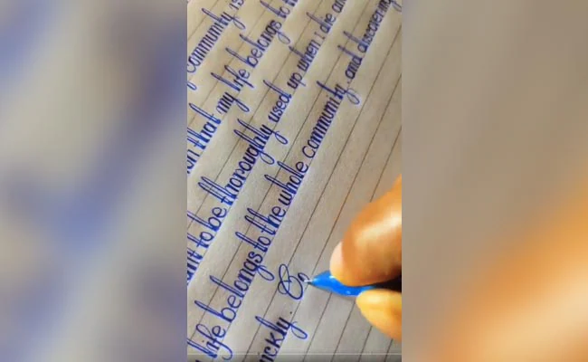 वायरल वीडियो में देखा जा सकता है कि कैसे एक शख्स बहुत ही सुंदर राइटिंग में लिख रहा है. ये राइटिंग इतनी सुंदर होती है कि इसके सामने प्रिंटिंग मशीन भी फेल है. इस वीडियो को देखने के बाद लोग सोशल मीडिया पर कमेंट कर रहे हैं. एक यूज़र ने कमेंट करते हुए लिखा है- बहुत ही प्यारा वीडियो है. वहीं एक अन्य यूज़र ने कमेंट करते हुए लिखा है- इतनी सुंदर राइटिंग मैंने कभी नहीं देखी है.