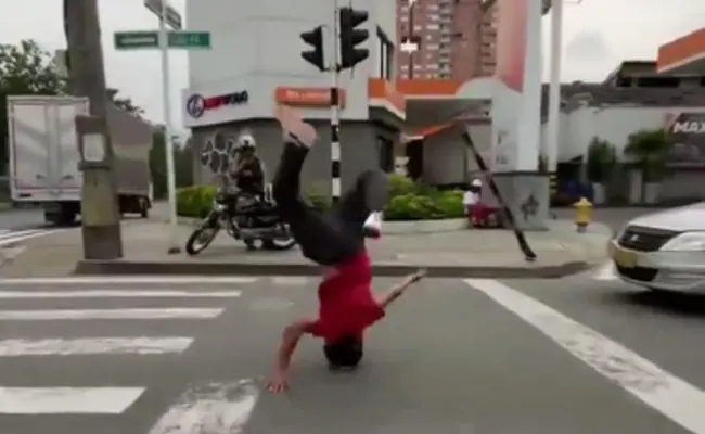 ट्विटर पर वायरल हो रहे इस वीडियो में एक युवक नजर आता है, जो सड़क किनारे खड़ा है. आसपास देखकर शायद जायजा भी ले रहा है कि उसके लिए सड़क पार करना कब आसान होगा. फिर अचानक वो दौड़ लगाना शुरू कर देता है. यहां तक तो सब ठीक था. अचानक ऐसा लगता है कि सड़क के पास पहुंच कर युवक गिर गया. दरअसल वो सड़क के पास आकर हैडस्टेंड लगाता है. पूरे शरीर का बैलेंस बनाता है और बहुत तेजी से सिर के सहारे रोड पार कर जाता है. उसे देखकर ये डर लगना लाजमी है कि बीच रोड में वो गिर जाता या कोई गाड़ी गुजरती तो उसका क्या होता. हालांकि वीडियो में देख सकते हैं युवक ने बहुत आसानी से रोड पार कर ली. सड़क पर सिर को घिसटने से बचाने के लिए युवक ने खास किस्म का हेड गेयर भी पहना है.