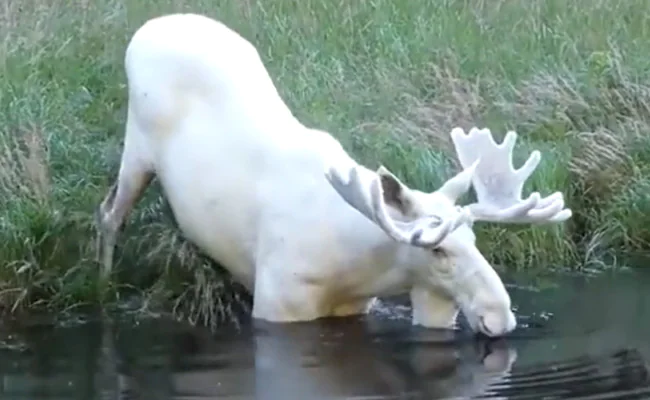 Social Media Viral Video: सोशल मीडिया पर रोज़ कोई न कोई वीडियो वायरल होता ही रहता है. आज भी एक शानदार वीडियो वायरल हो रहा है, जिसे देखने के बाद आप पूरी तरह से दंग हो जाएंगे. दरअसल, सोशल मीडिया पर जो वीडियो वायरल हो रहा है, उसमें देखा जा सकता है कि एक सफेद रंग का हिरण पानी पीते हुए नज़र आ रहा है. दरअसल, सफेद हिरण (White Moose) की आबादी बहुत ही कम हो जाने से यह काफी दुर्लभ जानवर माना जाता है. ये जानवर कभी कभार देखने को मिलता है. अभी हाल ही में सोशल मीडिया पर दावा किया जा रहा है कि एक सफेद हिरण को स्वीडन में देखा गया है.