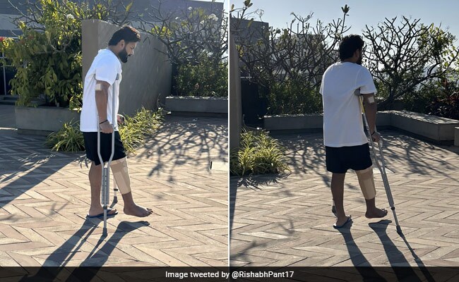 तस्वीर में देखा जा सकता है कि बल्लेबाज सह विकेटकीपर ऋषभ पंत अपने पैर पर चलने की कोशिश करते नज़र आ रहे हैं. वो बैसाखी के सहारे चल रहे हैं. इस पोस्ट को देखने के बाद सोशल मीडिया पर लोग उन्हें जल्दी ठीक होने की शुभकामनाएं दे रहे हैं.