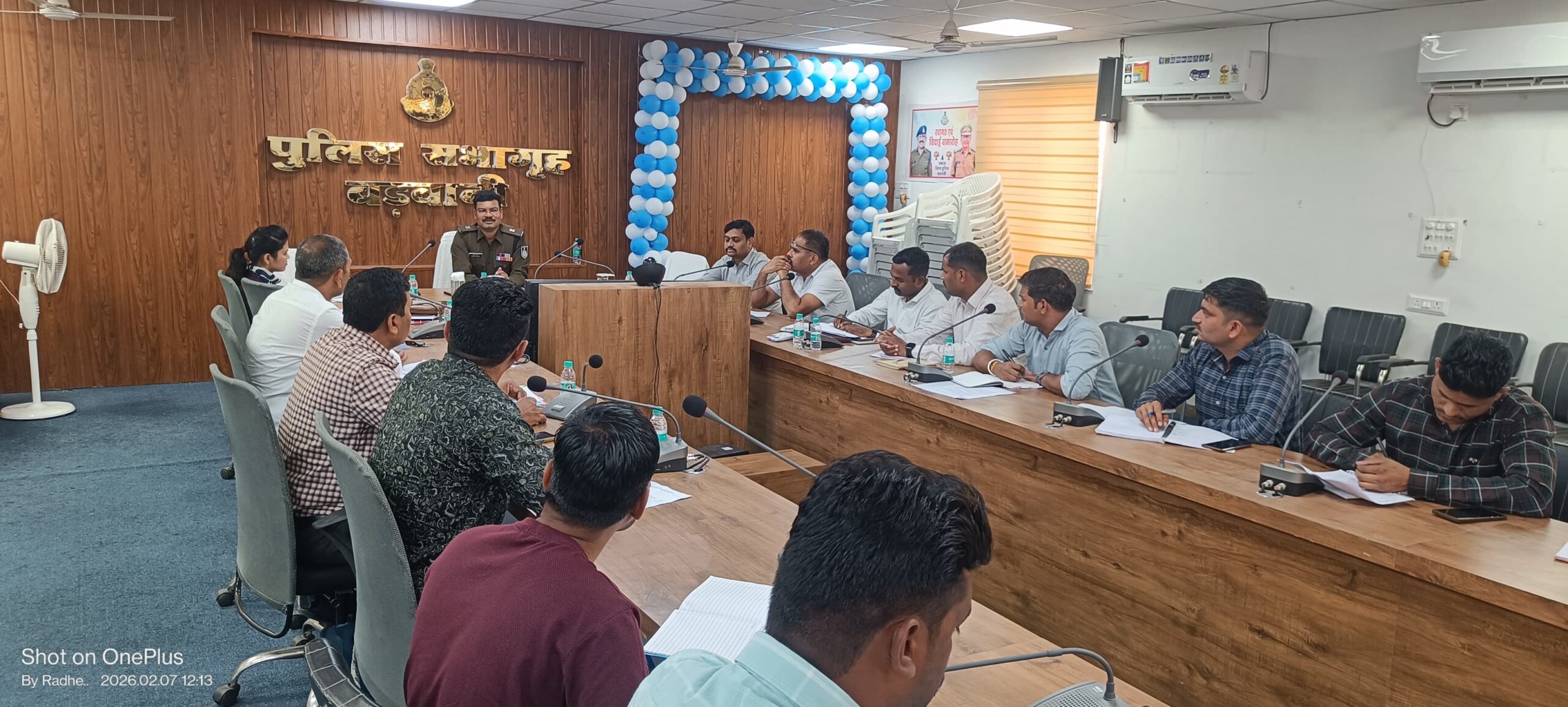 दिनांक 07.02.2026 को प्रभारी पुलिस अधीक्षक बड़वानी श्री धीरज बब्बर द्वारा पुलिस अधीक्षक कार्यालय बड़वानी में आसूचना संकलन करने वाले पुलिस अधिकारियों एवं कर्मचारियों की मासिक बैठक ली गई। बैठक में आगामी त्यौहार महाशिवरात्रि, शिवाजी जयंती, रमजान माह प्रारंभ, भगौरिया, होलिका दहन, होली एवं रंगपंचमी के दौरान कानून व्यवस्था एवं शांति बनाए रखने हेतु विशेष सतर्कता बरतने के निर्देश दिए गए।