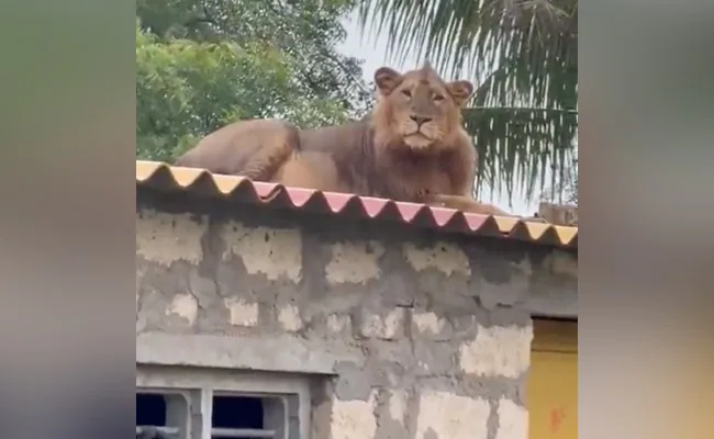 जंगल के राजा शेर को भला कौन रोक सकता है, वो जहां चाहे जा सकता है. एक दहाड़ से पूरे जंगल का हिला सकता है. शेर की एक झलक ही ऐसी होती है कि देखने वाले निगाह नहीं हटा सकते और वो पूरे घमंड में चूर शायद यही दहाड़ता है कि यहां सिर्फ मेरा राज चलता है. शेर की दहाड़ अगर डिकोड की जा सकती तो शायद यही शब्द सुनाई देते. कुछ इसी हाव भाव के साथ जंगल का राजा अचानक एक छत पर जाकर सवार हो गया. छत पर बैठे शेर को देखकर जो जहां था वहीं थम कर रह गया और इस नजारे को निहारता ही चला गया.