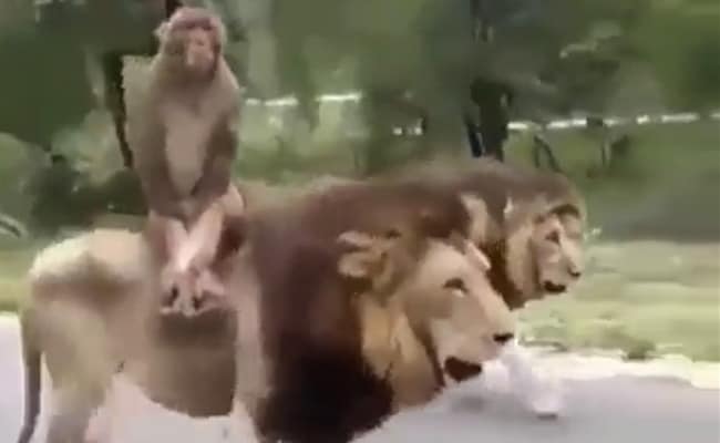वायरल वीडियो में देखा जा सकता है कि कैसे एक बंदर एक शेर की सवारी कर रहा है. ये बंदर बिल्कुल बहादुर नज़र आ रहा है. अमूमन ये होता है कि शेर को देखने के बाद लोग अपना रास्ता छोड़ देते हैं. कोई भी जानवर शेर के सामने आने से डरता है, मगर बंदर मामा तो बेफिक्री से उसकी सवारी करते हुए नज़र आ रहे हैं.