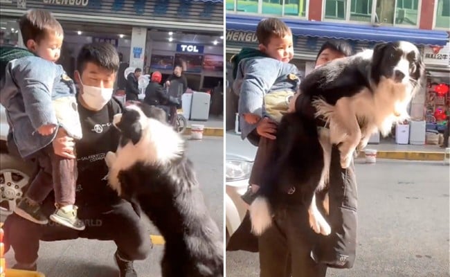 सोशल मीडिया पर वायरल हो रहे इस वीडियो में आप देख सकते हैं कि कैसे एक शख्स अपने बच्चे को गोद में उठाता है. शख्स को देखने के बाद उसका कुत्ता भी गोद में आने के लिए ज़िद्द कर देता है. मज़बूरी में शख्स को गोद में लेना पड़ता है. सोशल मीडिया पर यह वीडियो लोगों को बहुत ही ज्यादा पसंद आ रहा है. लोग कमेंट करते हुए कह रहे हैं- बड़ा ज़िद्दी कुत्ता है.