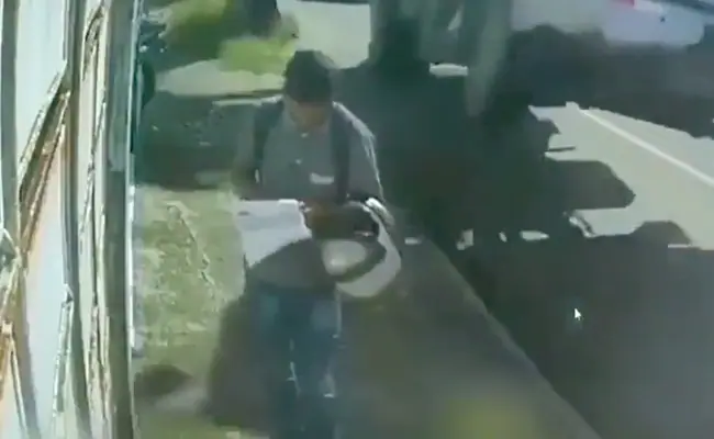तेज़ रफ्तार में आ रहा था ट्रक, शख्स के ऊपर गिर गया, वीडियो देख लोगों ने कहा- मौत छू के निकल गई