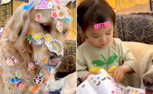 ट्विटर पर शेयर हुआ ये वीडियो जमकर वायरल हो रहा है, वीडियो में एक बहुत ही छोटी सी बच्चे अपने डॉगीज के साथ खेल रही है. बच्ची इन डॉगीज के साथ कोई ऐसा वैसा गेम नहीं खेल रही बल्कि ये कुत्तों के शरीर पर स्टीकर चिपकाने वाला एक अनोखा गेम खेलती दिख रही है. वह एक-एक कर स्टीकर निकलती है और कुत्तों पर चिपकाती जाती है. वीडियो में देखा जा सकता है कि एक कुत्ते का पूरा शरीर तरह-तरह स्टीकर से भर गया है. वहीं दूसरे डॉगी के सिर पर बच्ची स्टीकर चिपका रही है.