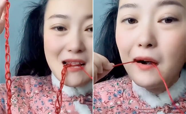 हैरान कर देने वाले इस वीडियो में एक महिला अपने मुंह से ही मशीन की तरह तेजी से धागे में गांठ बांधती नजर आ रही है, जिसे देखकर एक मिनट के लिए आपको भी अपनी आंखों पर यकीन नहीं होगा. वीडियो में देखा जा सकता है कि, महिला धागे में गांठ इस तरह से बांध रही है, जैसे वो कोई गले की चेन हो. आपने ऐसी ज्वैलरी चेन तो देखी ही होंगी, जो छोटे-छोटे टुकड़ों को जोड़कर बनाई जाती है, ठीक उसी तरह की डिजाइन महिला धागे पर बनाती नजर आ रही है. यह वीडियो वाकई कमाल का है.
