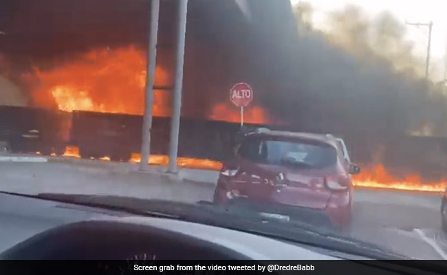 मैक्सिको (Mexico) के केंद्र में गुरुवार को एक तेल टैंकर (Oil Tanker) के रेल लाइन पर क्रैश होने के कारण भीषण आग (Fire) लग गई. इससे आसपास के घर भी चपेट में आ गए और पूरा इलाका काले धुंए से भर गया. रॉयटर्स के अनुसार, आग के कारण इलाके से बड़ी संख्या में लोगों को बचाव कर ले जाना पड़ा. लेकिन इस घटना में कोई हताहत नहीं हुआ. सोशल मीडिया पर अब इसकी वीडियो वायरल हो रही है. इसमें दिखता है कि मालगाड़ी भी आग की चपेट में आ गई. आस पास खड़ी गाड़ियों के ड्राइवर यह देख कर सकते में और अपने बच्चों को संभालते दिखे. इस रोंगटे खड़े करने वाले वीडियो में ऐसा लग रहा है कि जैसे मालगाड़ी किसी आग के दरिया से गुज़र रही है.