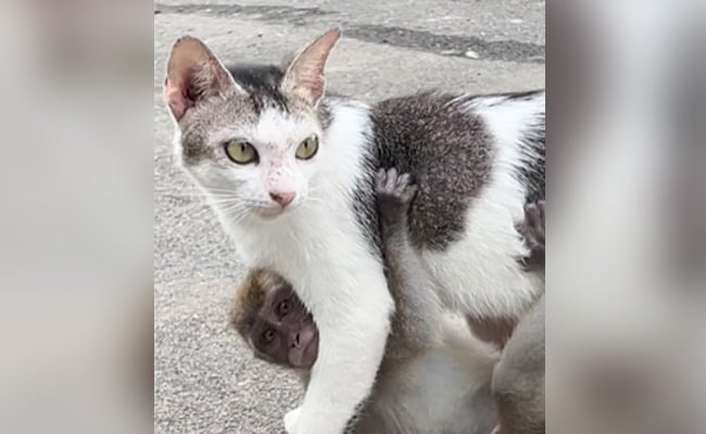 बिल्ली और बंदर क्या कभी दोस्त हो सकते हैं. एक तीखे, नुकीले दांत और नाखून की मालकिन और एक सॉफ्ट सा, पेड़ों पर उछल कूद करने वाला क्यूट जानवर. दोनों का कोई मेल ही नहीं है. अपनी तासीर को भुलाकर एक बार को दोनों दोस्ती कर भी लें, लेकिन मां बेटे का रिश्ता बन पाना तो नामुमकिन सा ही लगता है. तो, सोचिए क्या हुआ होगा जब एक खूंखार, चमकीली आंखों वाली बिल्ली के सामने एक नन्हा बंदर आया होगा. क्या दोनों दोस्त बनेंगे या एक दूसरे के दुश्मन या दोनों का साथ कुछ ऐसा होगा कि उसे देखने वाला चौंक जाएगा. इस सवाल का जवाब छुपा है ट्विटर पर तेजी से वायरल हो रहे बंदर और बिल्ली के इस वीडियो में.