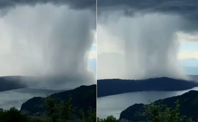 पहाड़ों के बीच झील के ऊपर बादल फटने का Video Viral