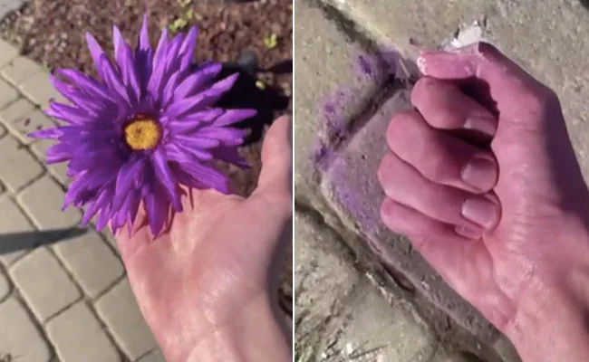 हाल ही में वायरल हो रहे इस वीडियो की शुरुआत में किसी शख्स के हाथ में एक बैंगनी रंग के फूल (Flower) को देखा जा सकता है. वीडियो में आगे जैसे ही शख्स हाथ से फूल को नीचे फेंकता है तो कुछ ऐसा होता है, जिसे देखने के बाद आंखों पर यकीन कर पाना मुश्किल हो जाएगा. वीडियो में जमीन पर पड़े फूल को शख्स जैसे ही छूता है, तो वो धूल की तरह मिटने लगता है, ऐसा लगता मानो जैसे वो कोई रंगोली हो. वीडियो में आगे शख्स के हाथ की एक उंगली पेड़ (Tree) के तने में बदलती नजर आती है, जो किसी जादू से कम नहीं लगता.